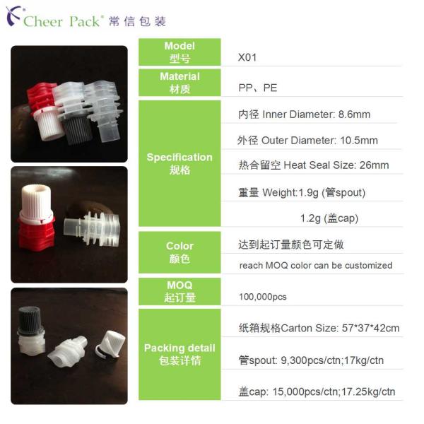 | Product Name | PE Material 8.6 mm Cheer Pack Plastic Spout Cap For Stand Up Juice Bag |